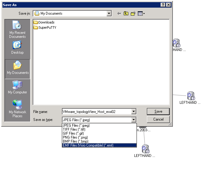You may have need, from time to time, to export the Storage Map view in the vSphere client to a format which can be used in reports, etc. It appears that the Storage Map may be exported to a Windows EMF (Enhanced Metadata Format). This format can then be imported into Visio: