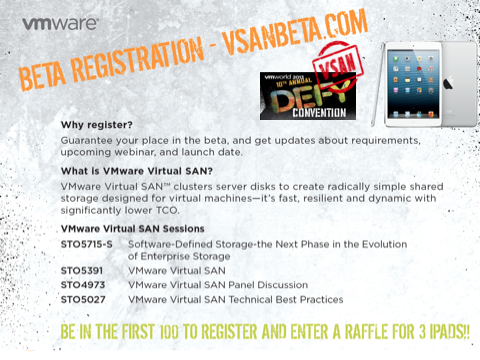 Last but not least, why not get involved in the VSAN beta. All the details are here, and it will provide you with an opportunity to provide direct feedback on VSAN (plus there are a couple of prizes for the first sign-ups):