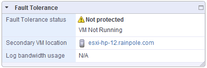 The next step is to select one of the hosts on which to run the secondary VM. Once that is completed, FT is ready to go. This will create an FT view in the VM Summary page, as follows: