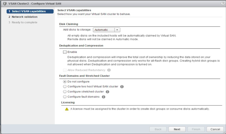 We received feedback in the past that the configuration process for certain use cases was not at all intuitive. The team has worked very hard on this feature so that it now is far simpler to configure VSAN for certain use cases from the get-go. Feature such as Fault Domains, 2-node VSAN and VSAN stretched cluster now have new wizards to make the whole setup process very straight-forward. The goal of keeping VSAN “radically simple” is still at the heart of VSAN development.