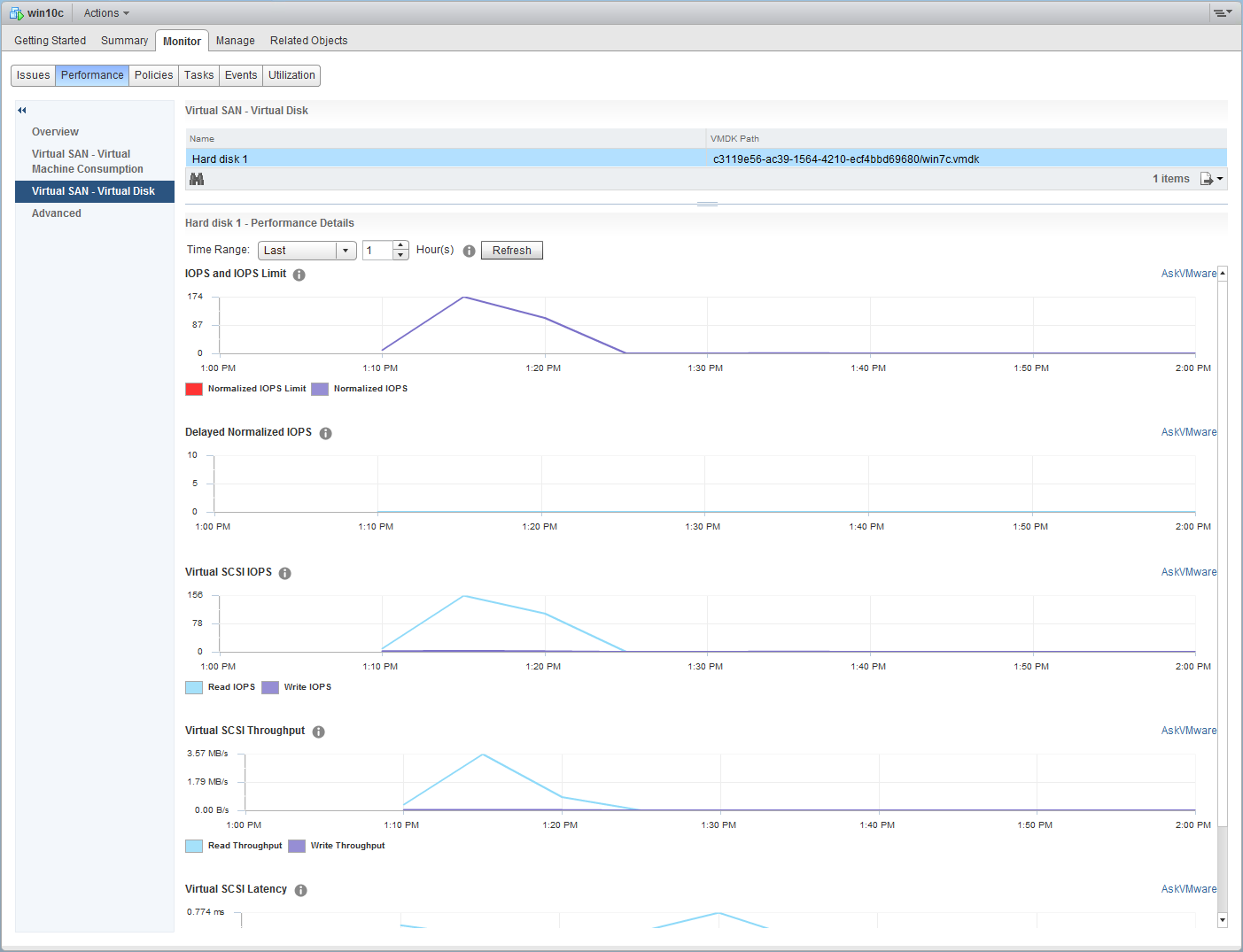 The final point to make is that the new performance service overcomes a severe limitation in VSAN Observer, namely the ability to look at historic data. By default, the performance service looks at the last 1 hour of data, but you can change this of course.