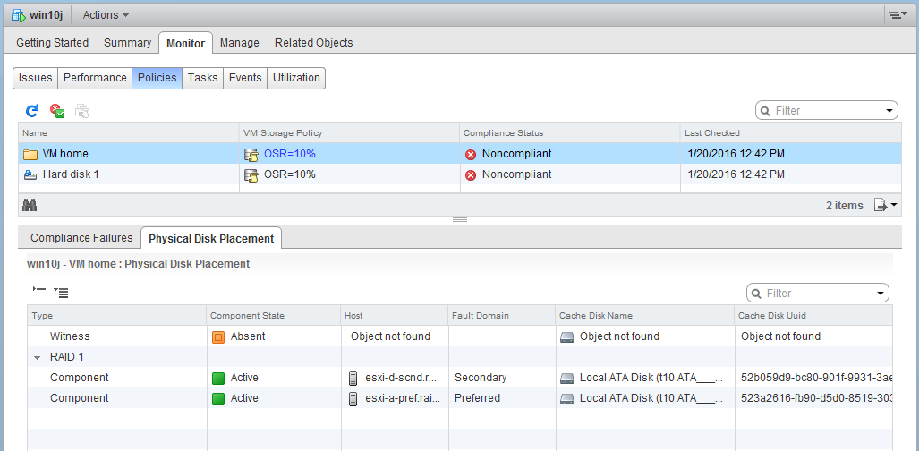 Caution: Note that this is upgrading the witness appliance. You must upgrade it just like you upgraded the physical ESXi hosts. You cannot simply deploy a new VSAN 6.2 witness appliance at this point, because the on-disk formats are not compatible. Instead you must upgrade the ESXi version of the witness appliance using normal upgrade tools.