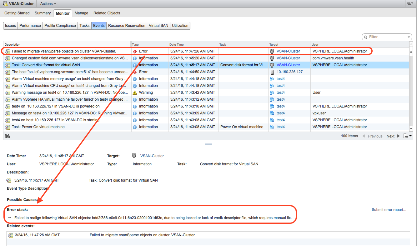 Failed to realign following Virtual SAN objects: 1e58f256-44f6-0201-3f17-02001823f4e0, f44ff256-11e1-1c0a-a06a-020018428a28, 8959f256-7ab7-f01b-913e-02001823f4e0, db50f256-29a3-2f2f-2404-02001823f4e0, 2358f256-9d3c-8b66-af4b-02001823f4e0, 1c58f256-bf10-b769-fb61-020018428a28, 7559f256-4da3-e787-ecbb-02001823f4e0, e850f256-10e0-eb8d-cac9-020018c78c91, 5858f256-4251-d5aa-d008-02001823f4e0, 0a51f256-f9de-3db4-c75b-020018428a28, 1e58f256-34fc-1cb7-f8aa-020018428a28, dd50f256-fb57-80c0-8894-020018d2303b, ec50f256-9792-1ddb-d757-020018428a28, 534ff256-4b1c-05e5-1092-020018428a28, de57f256-0c14-8bf0-635b-020018c78c91, 1658f256-3ae8-fcf7-a9a3-020018d2303b, due to being locked or lack of vmdk descriptor file, which requires manual fix.