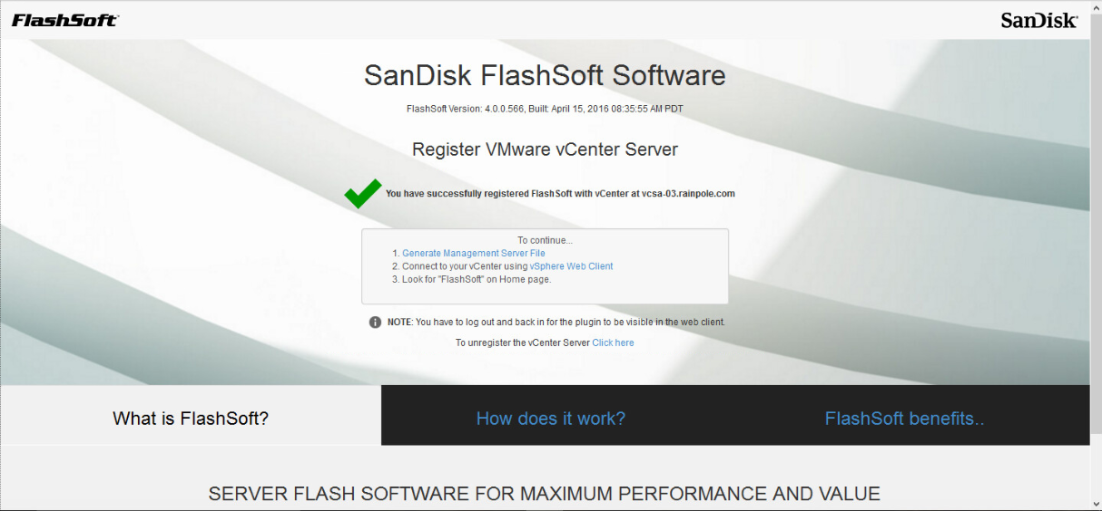 - Each vCenter server requires a FlashSoft appliance, although there can be multiple clusters managed in the same vCenter Server.