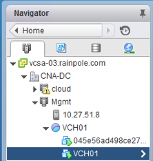 From the last pieces of output, I have the necessary docker API endpoint to allow me to begin creating containers. Let’s look at what has taken place in vCenter at this point. First, we can see the new VCH resource pool and appliance: